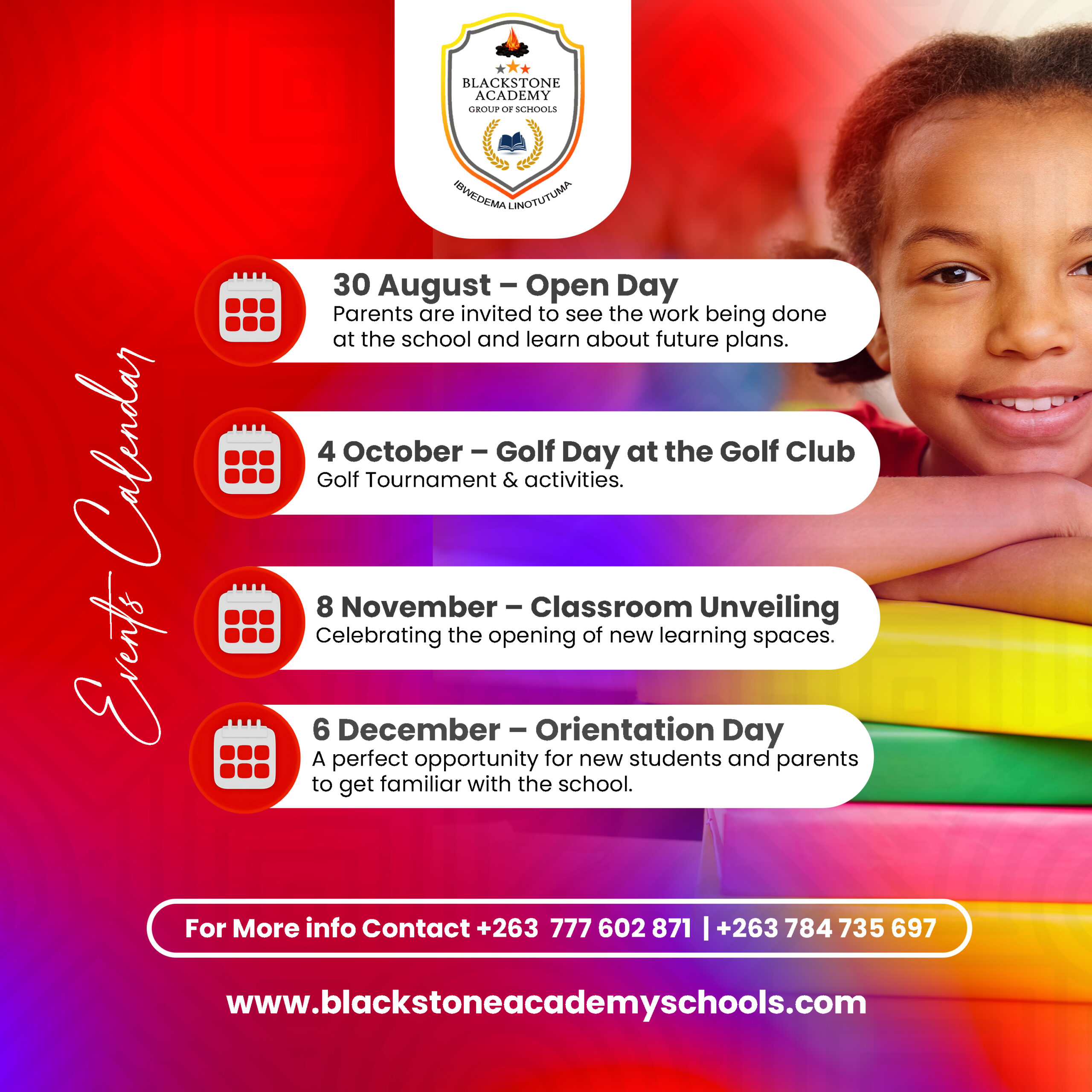 We are thrilled to announce that Blackstone Academy Group of Schools will be participating as an exhibitor at the prestigious Victoria Falls International Agricultural Show & Multi-Cultural Food Festival this September. This exciting three-day event represents a perfect opportunity for our educational institution to connect with the community and showcase…